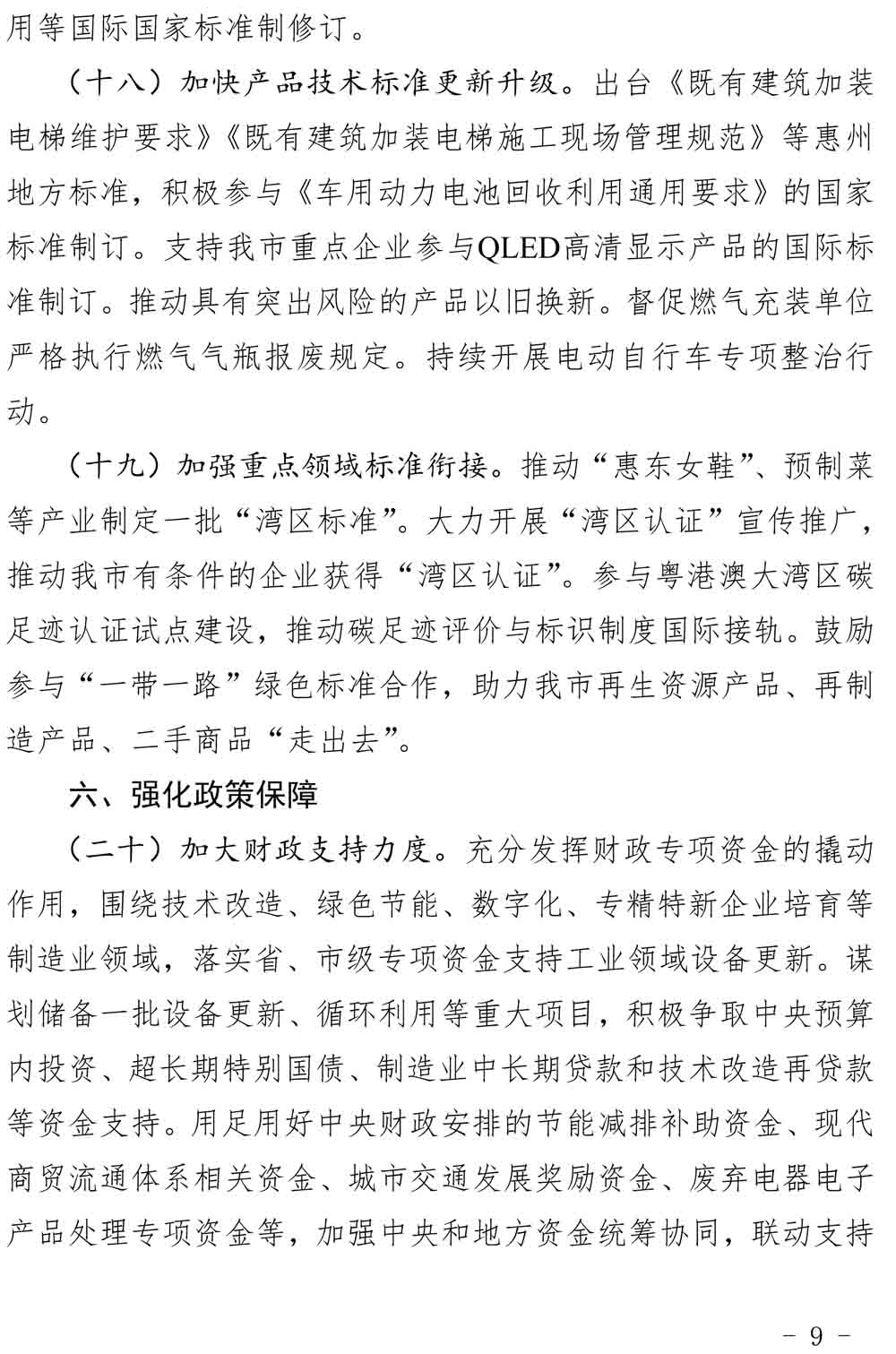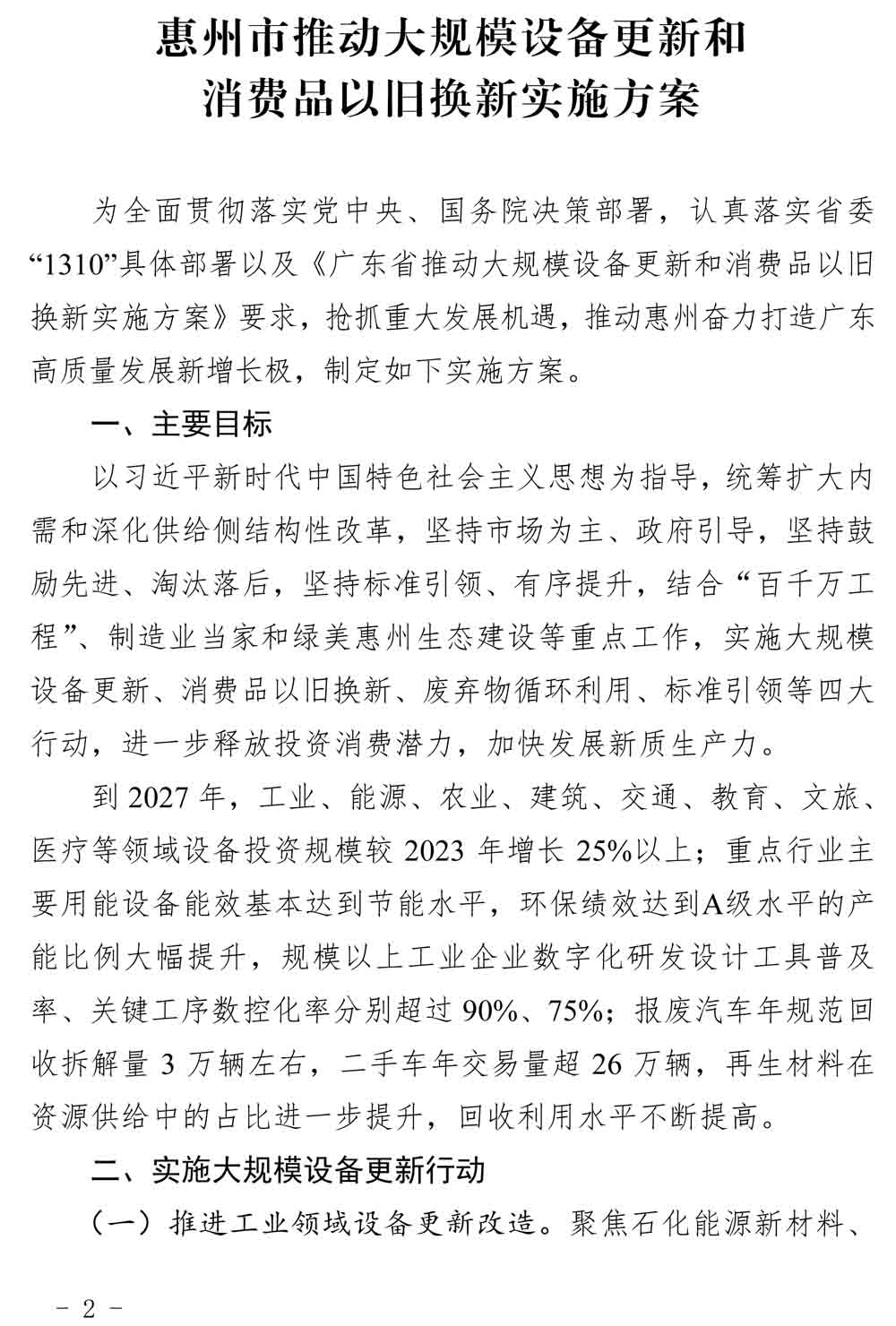 惠州市人民政府關于印發惠州市推動大規模設備更新和消費品以舊換新實施方案的通知(惠府〔2024〕20號)